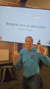 De deelnemers waren verrast door de moeilijkheidsgraad van de spelregelvragen. Er was niemand die alle vragen goed had. Er was wel een winnaar aan te wijzen met de meeste vragen goed, dat is Samuel! Los van de vraagstelling hebben de situaties in de vragen toch elkaar versterkt met situaties op het voetbalveld.